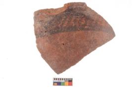 | Description / विवरण | Specimen of potsherd with black decorative geometric painting. |