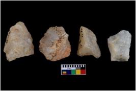 | Description / विवरण | There are n 4 of intact utilized worked cores; some of them have bulge of percussion and some are flat. |
