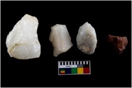 | Description / विवरण | There are n 4 cores; three are of quartz and one of chert.they are in average working condition. One of the core have coarse base. Two of them are trapeze in shape. |