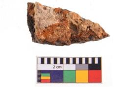| Description / विवरण | Fragment of iron; it is irregular in shape, tapering at one end and highly corroded. |