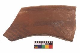 | Description / विवरण | Specimen of potsherd with black decorative geometric Linear painting, Type Black on Red Ware . |