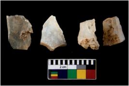 | Description / विवरण | There are n 4 of utilized worked cores. They show multidirectional irregular scar pattern. Three have broken tip. |