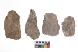 | Description / विवरण | These are n 4 of worked tools. They are tapering at one end and have sharp edges. Some have flat base and show dominant irregular scar pattern. |
