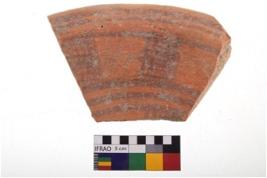 | Description / विवरण | Specimen of potsherd with decorative geometric painting. Type Red on Red Ware . |