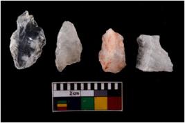 | Description / विवरण | There are n 4 flake cores. All of them are fully fluted flake cores without any trace of crested ridge flakes. Few are tapering at one end and some have sharp edges. |