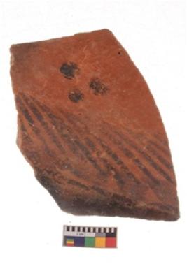 | Description / विवरण | Specimen of potsherd with black decorative geometric painting. |
