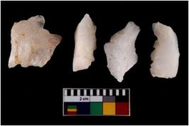 | Description / विवरण | There are n 4 flake cores. All of them are fully fluted flake cores without any trace of crested ridge flakes. Few are tapering at one end and some have sharp edges. |