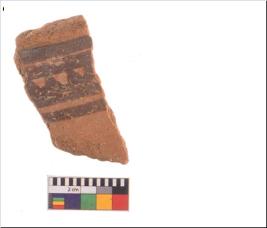 | Description / विवरण | Specimen of potsherd with decorative geometric painting, Type Black on Red ware . |