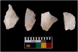 | Description / विवरण | There are n 4 flake cores. All of them are fully fluted flake cores without any trace of crested ridge flakes. Few are tapering at one end and some have sharp edges. |