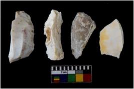 | Description / विवरण | There are n 4 of utilized worked cores. There are multidirectional irregular dominant scar pattern. Some are tapering at one end. They have sharp edges. |