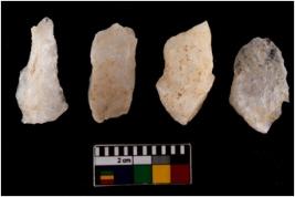 | Description / विवरण | There are n 4 flake cores. All of them are fully fluted flake cores without any trace of crested ridge flakes. Few are tapering at one end and some have sharp edges. |