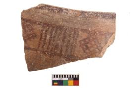 | Description / विवरण | Specimen of potsherd with decorative geometric painting. Type Black on Red Ware . |