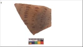 | Description / विवरण | Specimen of potsherd with decorative geometric painting, Type Black on Red ware . |