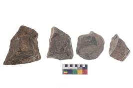 | Description / विवरण | These are n 4 of worked tools. They are tapering at one end and have sharp edges. Some have round base and some have flat base and show dominant irregular scar pattern. |