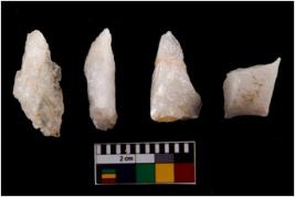 | Description / विवरण | There are n 4 flake cores. All of them are fully fluted flake cores without any trace of crested ridge flakes. Few are tapering at one end and some have sharp edges. |