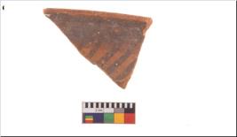| Description / विवरण | Specimen of potsherd with decorative geometric painting, Type Black on Red ware . |