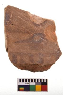 | Description / विवरण | Specimen of potsherd with decorative geometric painting. Type Black on Red Ware . |