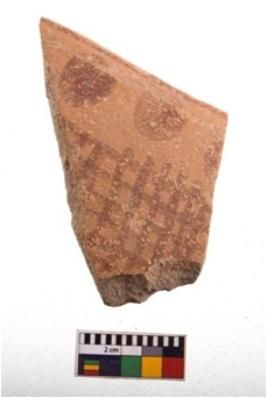| Description / विवरण | Specimen of potsherd with decorative geometric painting. Type Black on Red Ware . |