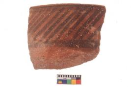 | Description / विवरण | Specimen of potsherd with black decorative geometric painting. |