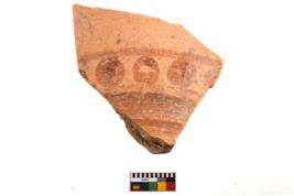 | Description / विवरण | Specimen of potsherd with decorative geometric painting. Type Black on Red Ware . |