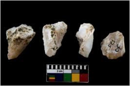 | Description / विवरण | There are n 4 of utilized worked cores. There are multidirectional irregular dominant scar pattern on both dorsal and ventral side. Some are tapering at one end. |