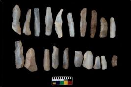 | Description / विवरण | There are n 20 microliths. All blades have retouched sides. Some of them have flat base and blunted edges. Few are tapering at one end. |