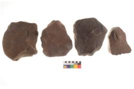 | Description / विवरण | There are n 4 utilized worked flakes; they show multidirectional irregular scar pattern on both dorsal and ventral face of the flakes.. |