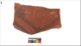 | Description / विवरण | Specimen of potsherd with decorative geometric painting, Type Black on Red ware . |