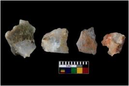 | Description / विवरण | There are n 4 of utilized worked cores. They show multidirectional irregular dominant scar pattern. They have sharp edges and one is tapering at one end. |