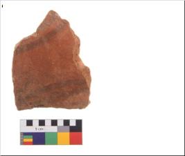 | Description / विवरण | Specimen of potsherd with decorative geometric painting, Type Black on Red ware . |