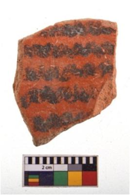 | Description / विवरण | Specimen of potsherd with decorative geometric painting. Type Black on Red Ware . |