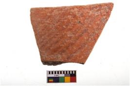 | Description / विवरण | Specimen of potsherd with decorative geometric painting. Type Black on Red Ware . |