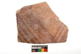 | Description / विवरण | Specimen of potsherd with decorative geometric painting. Type Black on Red Ware . |