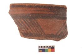 | Description / विवरण | Specimen of potsherd with black decorative geometric painting. |