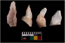 | Description / विवरण | There are n 4 flake cores. All of them are fully fluted flake cores without any trace of crested ridge flakes. Few are tapering at one end and some have sharp edges. |