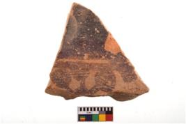 | Description / विवरण | Specimen of potsherd with decorative geometric painting. Type Black on Red Ware . |