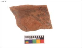 | Description / विवरण | Specimen of potsherd with decorative geometric painting, Type Black on Red ware . |