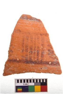 | Description / विवरण | Specimen of potsherd with decorative geometric painting. Type Black on Red Ware . |