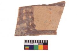 | Description / विवरण | Specimen of potsherd with decorative geometric painting. Type Black on Red Ware . |