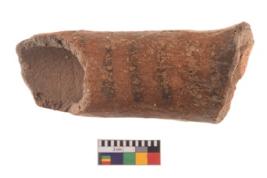 | Description / विवरण | Specimen of potsherd spout with decorative geometric painting, Type Black on Red ware . |