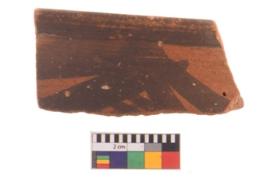 | Description / विवरण | Specimen of potsherd with decorative geometric painting, Type Black on Red ware . |