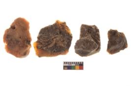 | Description / विवरण | There are n 4 utilized worked flakes; they show multidirectional irregular scar pattern on both dorsal and ventral face of the flakes.One is tapering at one end and having sharp edges. |
