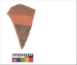 | Description / विवरण | Specimen of potsherd with decorative geometric painting, Type Black on Red ware . |