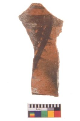 | Description / विवरण | Specimen of potsherd with decorative geometric painting, Type Black on Red ware . |