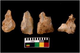 | Description / विवरण | There are n 4 of utilized worked cores. They show multidirectional irregular scar pattern and are tapering on one end. |