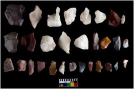 | Description / विवरण | There are n 20 of utilized worked flakes. They show multi-directional irregular scar pattern. Some are tapering on one end. Almost all are having sharp edges. |