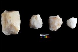 | Description / विवरण | There are n 4 flake cores. All of them are fluted without any trace of crested ridge flakes. Some are tapering at one end and some have sharp edges. All are of different size. |