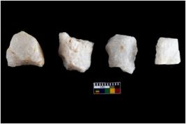 | Description / विवरण | There are n 25 flakes; among them 17 are made up of quartz and 8 are made up of chert. Some are tapering at one end.All are having sharp edges. |
