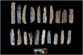 | Description / विवरण | There are n 20 microliths; 1 is made up of Agate and 19 are made up of Chalcedony. All blades have retouched sides. Some are tapering at one end. Some have flat base and some have pointed edges. |