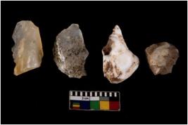 | Description / विवरण | There are n 4 of utilized worked cores. They show multidirectional irregular scar pattern. Two are tapering on one end. |